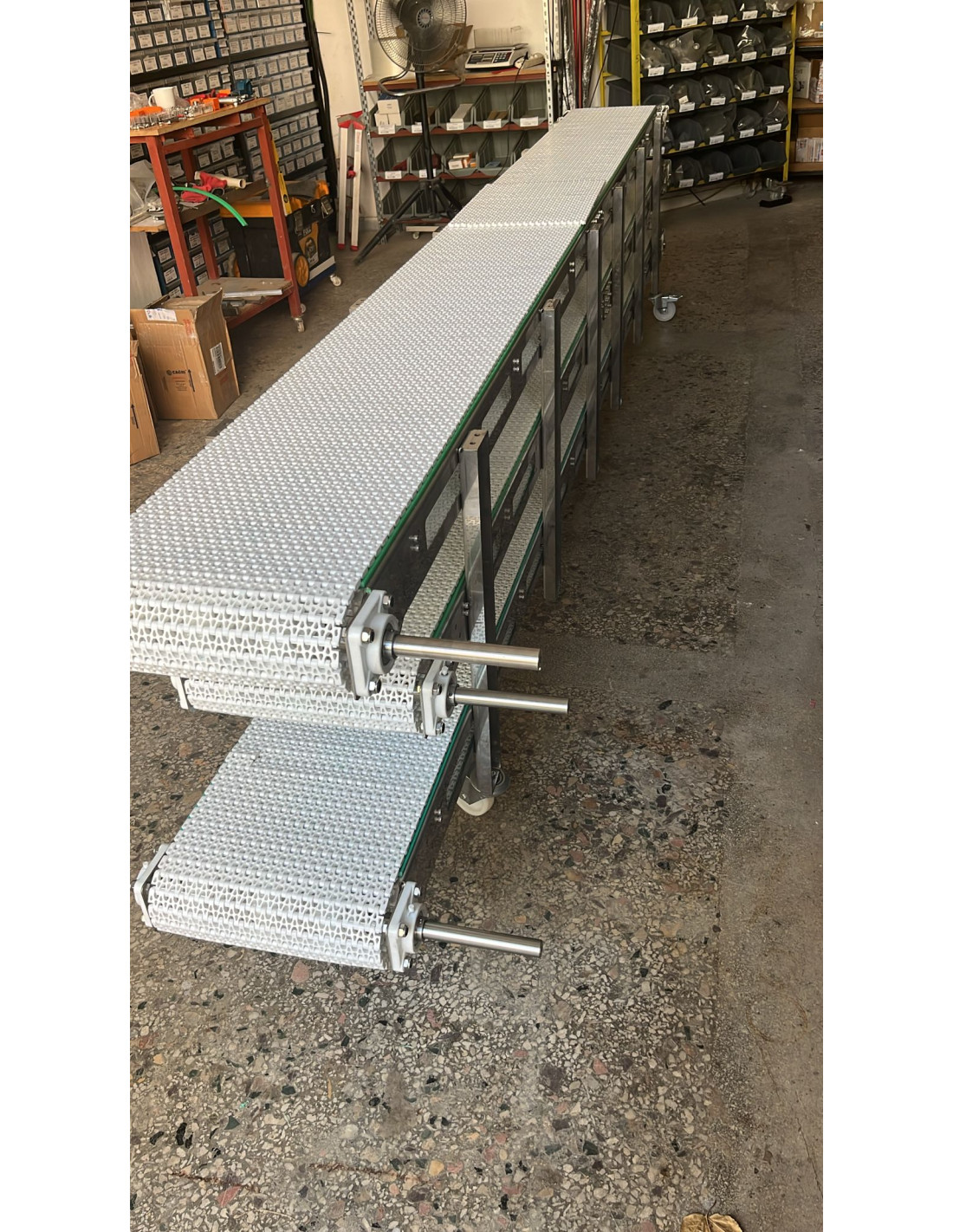 Katlı Modüler Konveyörler, üretim sahasında dikey ve yatay taşıma ihtiyaçlarını tek bir kompakt yapı içinde çözer. Çok katlı tasarımı sayesinde sınırlı üretim alanlarında maksimum verimlilik sağlar. Modüler bant yapısı, sağlamlığı, sessiz çalışması ve kolay bakımı ile endüstriyel taşıma süreçlerinin en çok tercih edilen sistemlerinden biridir.